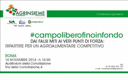 Bisogna costruire un agroalimentare davvero competitivo che guardi ai veri punti di forza e non ai falsi miti, perché se è vero che in questi anni di crisi il settore si è mostrato anticiclico garantendo produttività e lavoro, è altrettanto certo che resta soffocato dalla burocrazia e da costi fuori controllo, dal peso di mercati domestici fermi e dalla scarsa aggregazione e internazionalizzazione: di questo si è discusso a Roma nel corso della conferenza stampa di Agrinsieme, dove i presidenti del coordinamento tra Cia, Confagricoltura e Alleanza delle cooperative agroalimentari (Dino Scanavino, Mario Guidi, Giorgio Mercuri, Giovanni Luppi, Giampaolo Buonfiglio) hanno lanciato la prima Conferenza Economica di Agrinsieme, in programma il 18 novembre all’Auditorium della Conciliazione. Un evento pensato per aprire un dibattito e avviare un’iniziativa politica sull’assetto normativo e organizzativo del sistema agroalimentare italiano, che necessita di maggiore attenzione da parte delle Istituzioni e, soprattutto, di politiche economiche che abbiano come obiettivi il mercato, la crescita, l’occupazione e la sostenibilità.