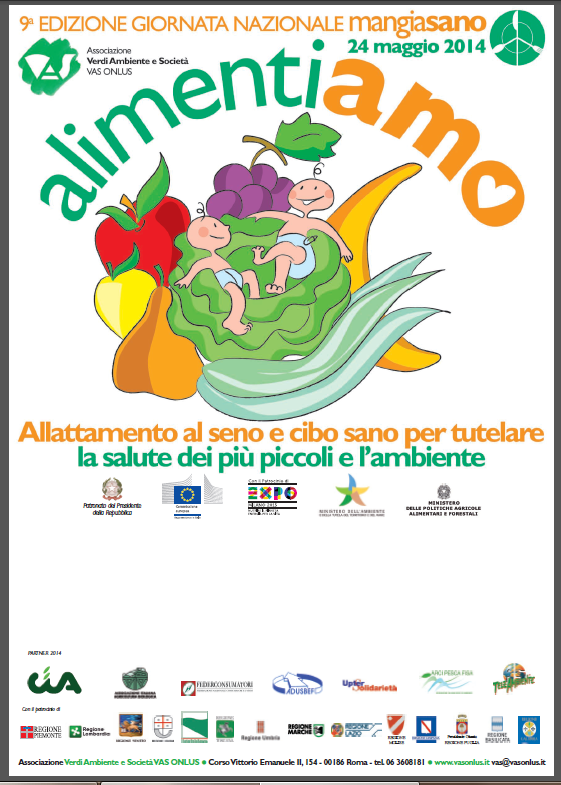 In Italia è “allarme rosso” per l’alimentazione di mamme e bambini: poca frutta e verdura e troppi grassi nella dieta, l’allattamento naturale è diventato un fenomeno di “nicchia”. Per questo, con la nona edizione della Giornata nazionale “Mangiasano” sotto lo slogan ‘Alimenti-amo’, Vas e Cia vogliono contribuire a divulgare un nuovo modello alimentare “naturale” fin dalla tenera età (0-3 anni) e ancor prima in gravidanza. Sabato 24 maggio, nelle piazze di oltre 20 città italiane, si parlerà di questo e dell’importanza dell’allattamento materno, visto che oggi nel Paese solo il 10% dei neonati è allattato esclusivamente al seno per 6 mesi, come suggerito dall’Organizzazione mondiale della Sanità.