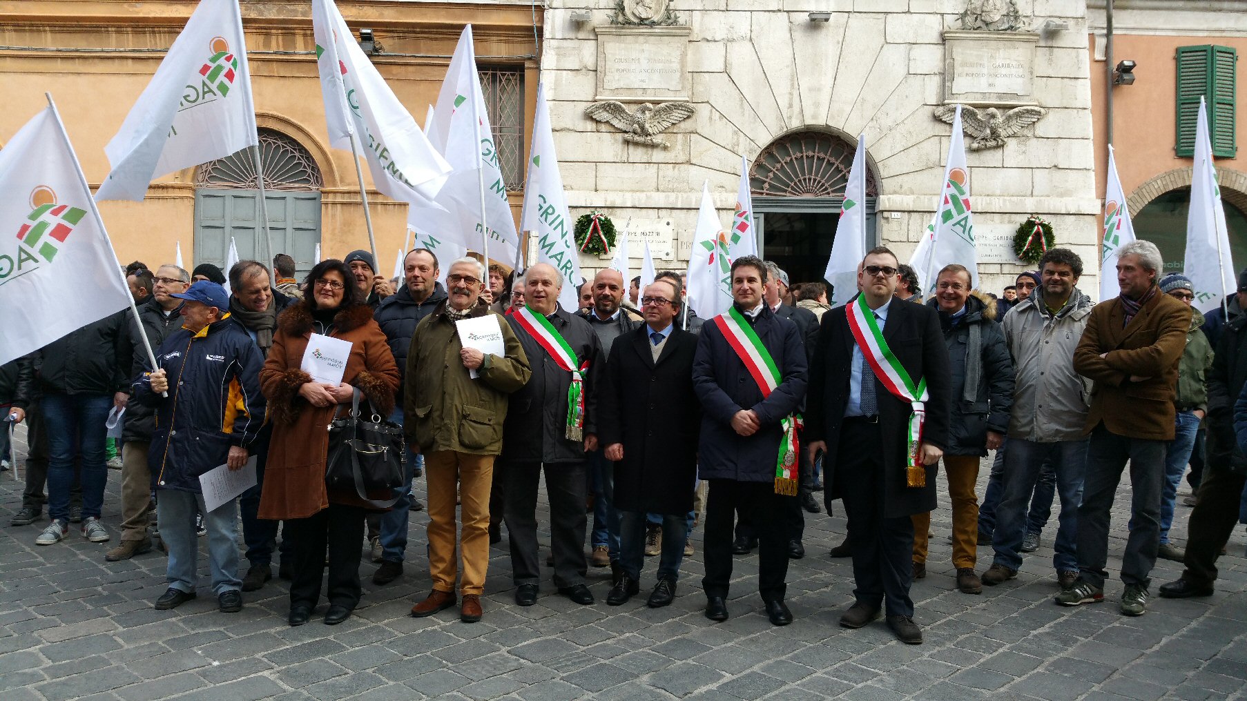 Una delegazione di Agrinsieme Marche è stata ricevuta dalla prefettura di Ancona davanti cui è svolta la manifestazione del coordinamento regionale, formato da Cia, Confagricoltura e Alleanza delle Cooperative Agroalimentari (Agci, Confcooperative, Legacoop), in adesione all’iniziativa nazionale per presentare e sensibilizzare l’opinione pubblica e le istituzioni sui problemi dell’agricoltura. I rappresentati agricoli, fra cui il responsabile regionale di Legacoop Marche Agroalimentare, Simone Cecchettini, accompagnati dai rappresentanti dei Comuni di Pergola, San Lorenzo in Campo, Fratterosa, Arcevia, hanno evidenziato, nel confronto alla prefettura dorica, il disagio della categoria dovuto ai provvedimenti governativi, che penalizzano un settore già provato, e, in particolare, l’introduzione dell’Imu sui terreni agricoli. Le Centrali cooperative e le associazioni raccolte in Agrinsieme Marche hanno auspicato l’adozione di provvedimenti normativi per il settore agroalimentare per incentivare e tutelare il ruolo dell’agricoltura, essenziale, oltre che dell’attività imprenditoriale e dell’occupazione, anche della salvaguardia del territorio e dell’ambiente. La manifestazione è stata organizzata da Agrinsieme per presentare le criticità del settore agricolo che vanno dalla questione fiscale, oltre che all’Imu, che comporta un aggravio di 300 milioni di euro e interesserà 2.800 Comuni montani prima esentati, all’applicazione della riforma della Politica agricola comune, dai Psr alle normative ambientali e sanitarie, dall’organizzazione economica ai gap strutturali del settore, dalla gestione del territorio alla produzione di energie rinnovabili, fino alla crisi dei mercati. Molti i comparti che sono in una situazione di estrema difficoltà, l’ortofrutta, la zootecnia, l’olio, il vino, sui quali si richiamerà l’attenzione per sollecitare il rilancio dei consumi, interni ed esteri, e rinsaldare la filiera recuperando competitività e redditività.