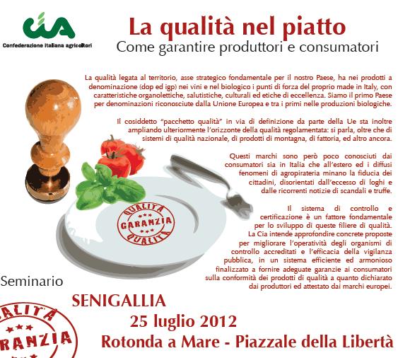Nel corso del seminario nazionale a Senigallia, la Cia ricorda che l’Italia detiene il primato europeo di prodotti a denominazione (244) e conta un terzo delle imprese bio operanti nell’Ue. Record messi a dura prova da truffe e contraffazioni alimentari, che “scippano” 3 milioni di euro al giorno alle aziende agricole e minano la fiducia dei consumatori. Il presidente Politi: ecco perché occorre un gioco di squadra tra gli organismi accreditati alla vigilanza, evitando inutili sovrapposizioni. Rafforzare e integrare i sistemi di controllo e di certificazione per proteggere al 100 per cento i prodotti di qualità dalla piaga della contraffazione, offrendo garanzie adeguate ai cittadini. Ma anche rafforzare la promozione dei marchi Dop e Igp meno conosciuti, per favorire uno sviluppo diffuso di tutte le eccellenze italiane a tavola. Solo così si tutela davvero la filiera agroalimentare “made in Italy”, dai produttori ai consumatori. E’ questo il messaggio lanciato dalla Cia-Confederazione italiana agricoltori al seminario “La qualità nel piatto”, che si è tenuto oggi a Senigallia alla Rotonda a Mare, alla presenza del presidente nazionale Giuseppe Politi.